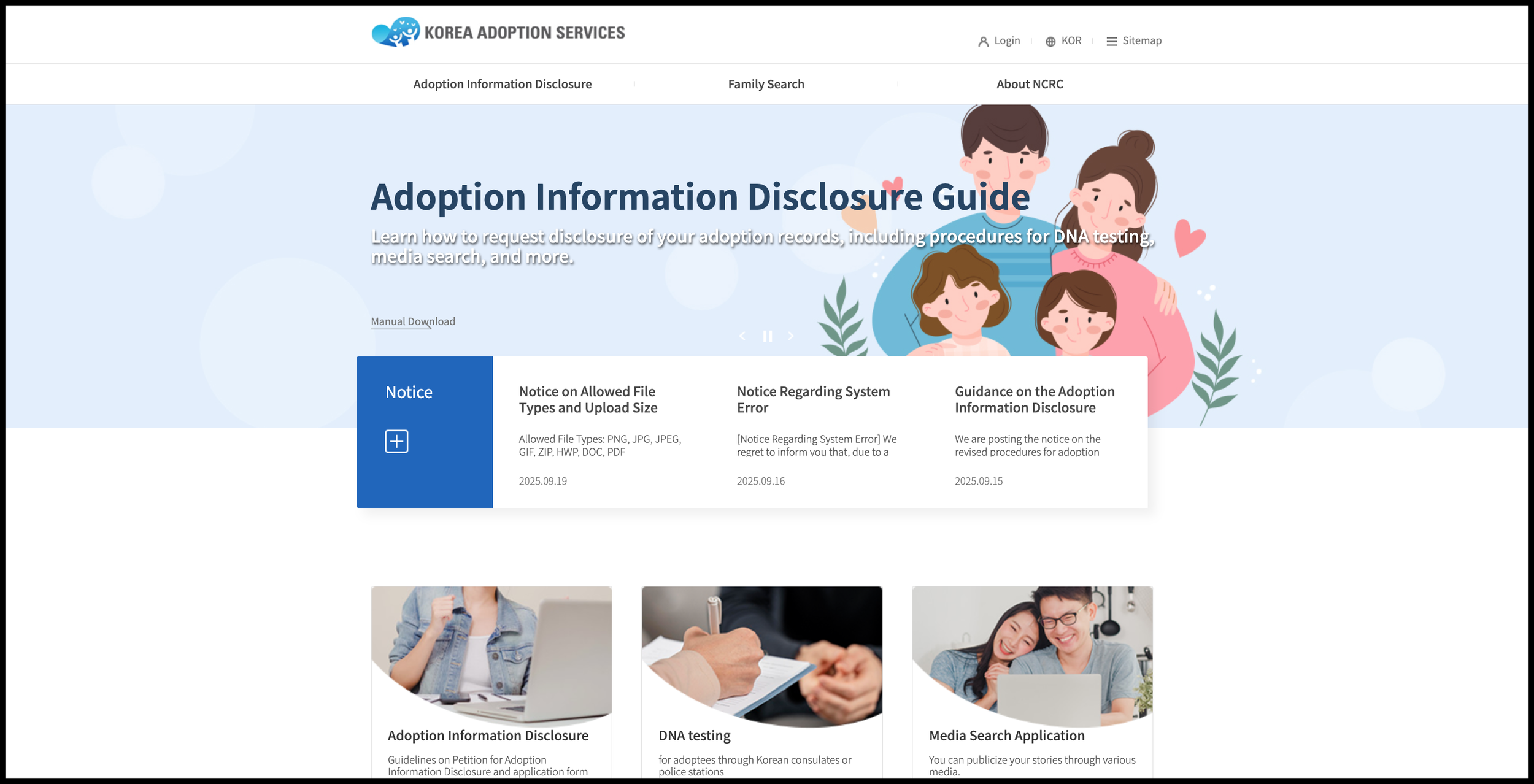[Notice] Expansion of DNA Registration Eligibility for Adoptees Without Known Birth Parents (Domestic & Overseas)